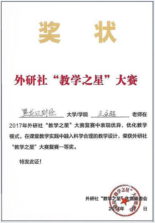外研社“教学之星”大赛由教育部高等学校大学外语教学指导委员会、教育部高等学校英语专业教学指导分委员会、全国翻译专业学位研究生(MTI)教育指导委员会和外语教学与研究出版社共同举办,是一项面向全国高等院校外语教师的大规模、高水准的权威赛事。人文科学系教师王永超在比赛中表现优异,脱颖而出,充分体现了我院教师优秀的个人教学素养,为学院争得了荣誉。
