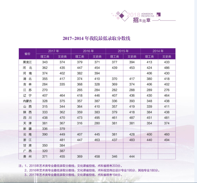 2014-2017年我院最低录取分数线