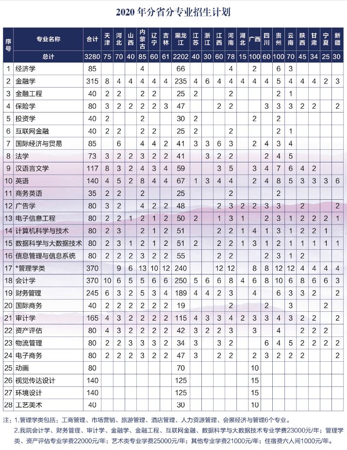 2020年分省分专业招生计划
